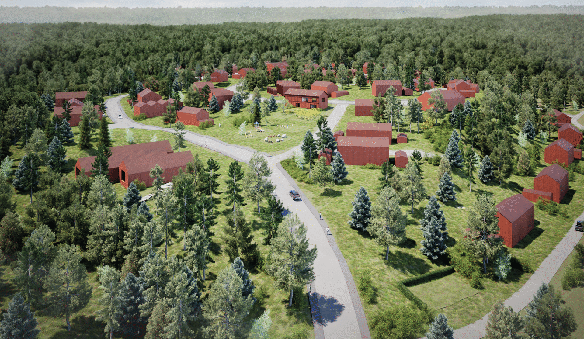 Visionen är att skapa en modern by med småskalig karaktär och närhet till skog och natur. Genom att bevara promenadstråk och skapa nya platser för rekreation stärks friluftslivet och området blir mer tillgängligt för alla.