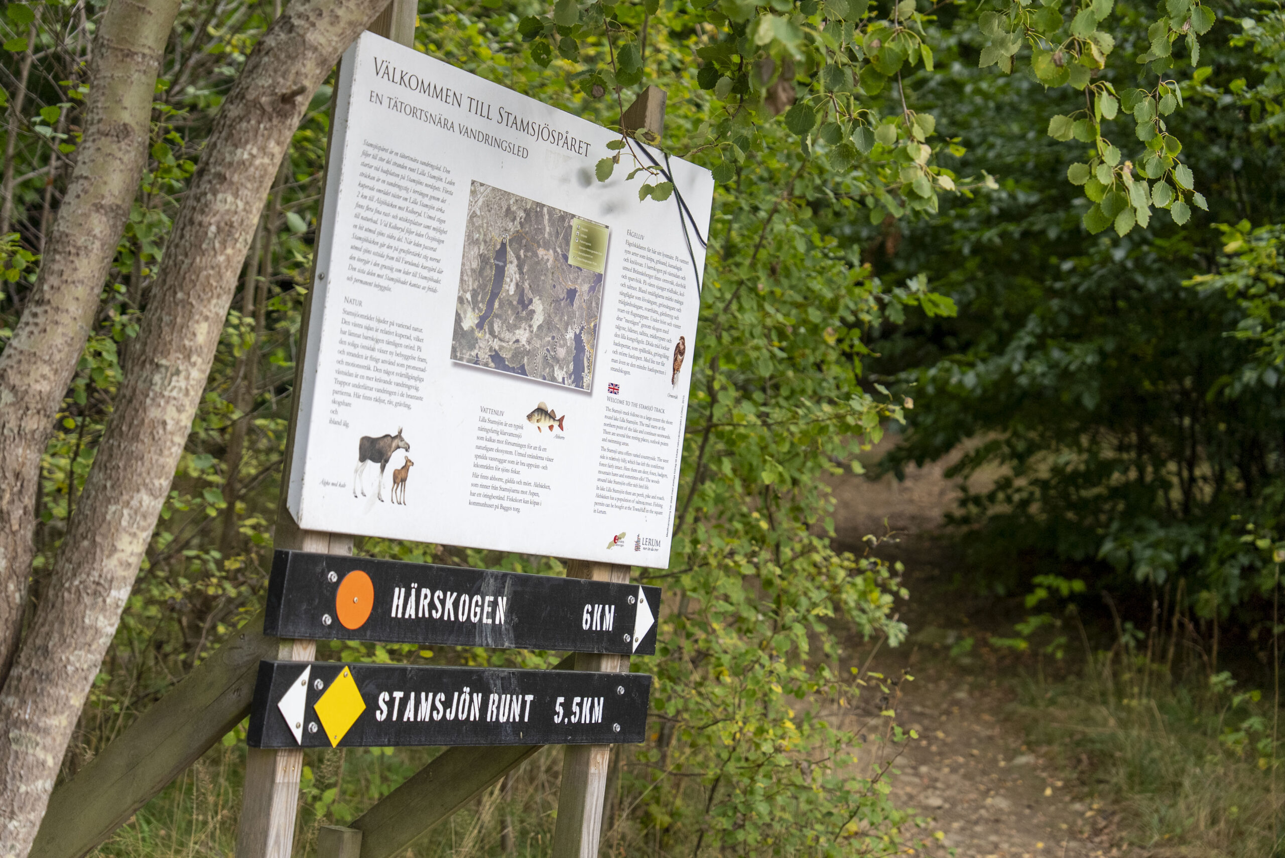 På gång- eller cykelavstånd ligger Lilla Stamsjön med sandstrand, bryggor, hopptorn och en led som tar dig runt sjön.